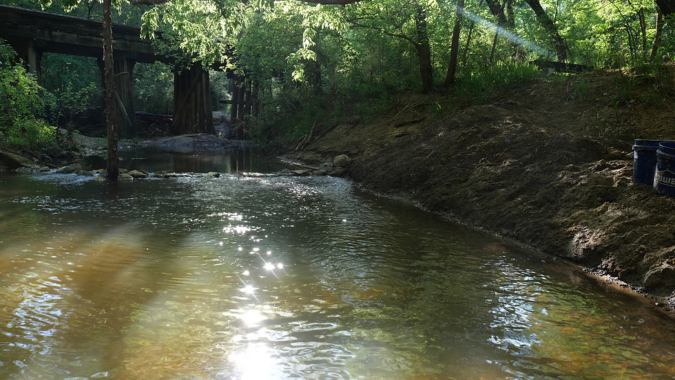 On the southern end of the property, this area is dominated by a railroad track with a large railroad bridge. This is the main spot for swimming on the property.